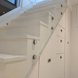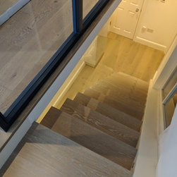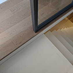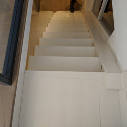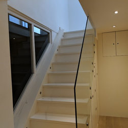 We love a challenge. This bespoke staircase project was just that! We were called to a house in Putney, which had just undergone a complete refurbishment. However, the owners were very disappointed with the modern wooden staircase, leading to the basement. Although they loved the modern glass balustrade, the wooden treads were marked with dents and the paintwork had already begun to chip. The issue was that it had been built using soft pine. As soon as we saw the stunning structure, we knew we would be able to provide the solution and achieve the high-end finish the homeowners desired.
