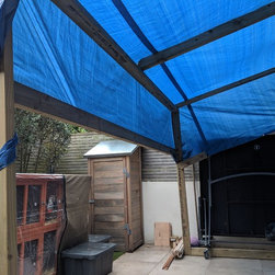 Each new step had to be carefully cut individually on site. Cutting inside wasn’t possible as the lack of adequate ventilation meant that it would be far too dusty. Instead we constructed a tent like structure in the garden. The canopy kept our tools (and the team) dry and out of the rain and meant our work ran without any delays.
