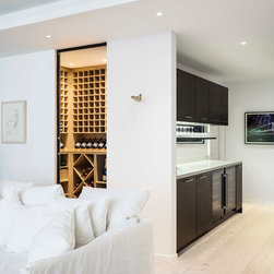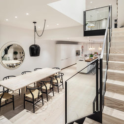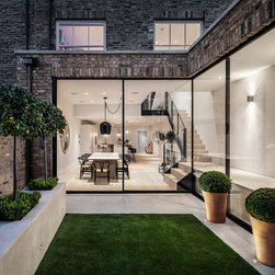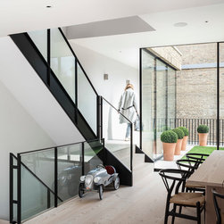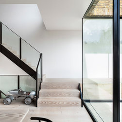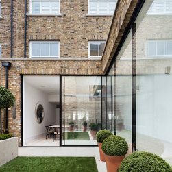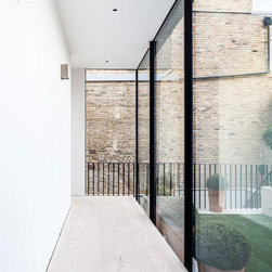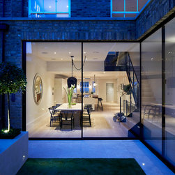 The renovation of this five storey Georgian house in Chelsea involved a radical series of side, rear and roof level extensions and a full subterranean excavation. Completed in 2015, the practice relished the challenges of such an enormous rebuild, much of which was below the water table. Moore Park House, set on an ‘L’ shaped plot with dual street entrances, now encompasses 5000 square feet of living space spanning six floors. From the concrete soffits of the gym, sauna and media rooms at basement level to the wall to wall glass of the sixth floor living room with views reaching the London Eye, this house is truly unique.