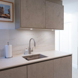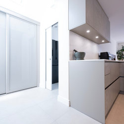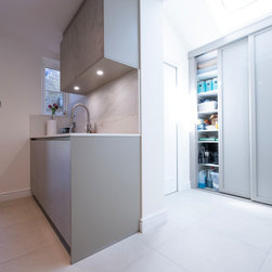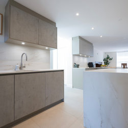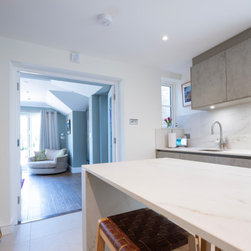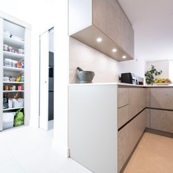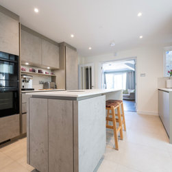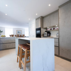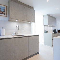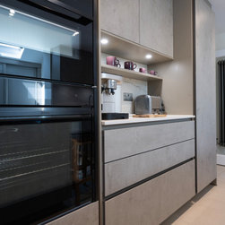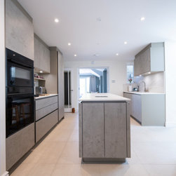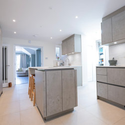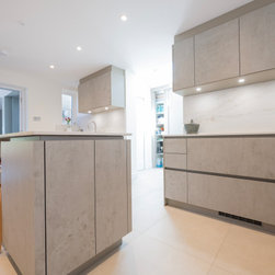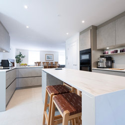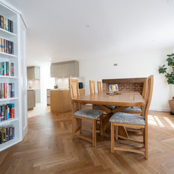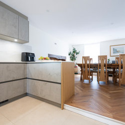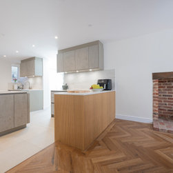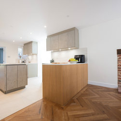 Modern Handleless Kitchen with Warm Oak & Herringbone Flooring