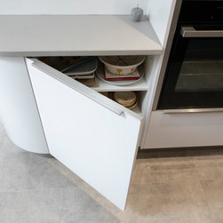 The brief for this kitchen was to create a workable, ergonomic space which felt spacious and open. The initial inspiration starting point was a concrete apple that the client brought home from their travels.
