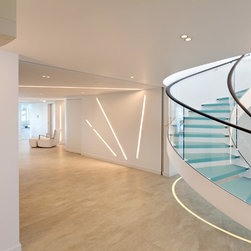 A bright exciting modern new build house with a dramatic four storey staircase, a beautiful kitchen and a large family entertaining area.