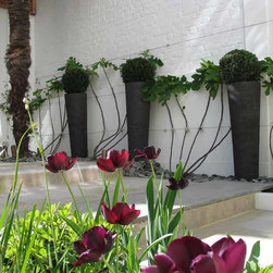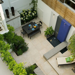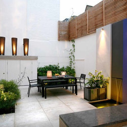 The new owners of this large elegant house in Chelsea in London had moved from a house with a traditional garden and as they already had a cottage in the country, they wanted to create a courtyard garden which was contemporary in feel and good for entertaining.