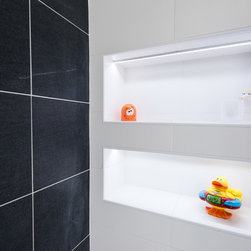 This was a dated Bathroom with a small shower cubical and issues with mould. The brief was to create a spacious, modern family bathroom that was easy to clean and had a good sized shower. We achieved this by re-planning the shower area and using high quality products that create clean lines. The result is a spacious family bathroom that is functional yet beautiful.