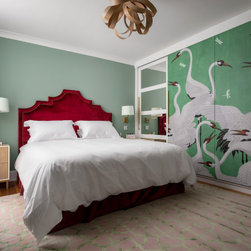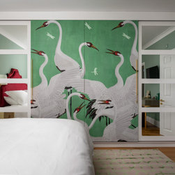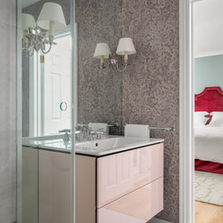 Beautiful Gucci wallpaper provides a statement piece on the Master Bedroom wardrobe doors and also disguises the cabinetry hidden behind. And the Master Bathroom features a walk-in combined bath and shower area, with beautiful Carrara marble on the walls.