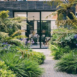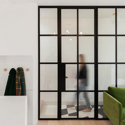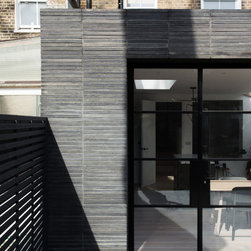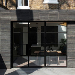 Following the selection of brick, steel windows are used internally and to link to the rear garden. An internal window and roof lights in the extension enable more natural light to penetrate through. To capture the changing light, we installed angled timber joists to the roof windows, which cast dynamic shadows on the walls.