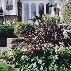 The design process: A sketch proposal was followed by a planting plan after she sent him a survey. During the design process she added a romantic conservatory to open up the vista to the garden from the house. New steps were added to lead the new conservatory to the brick patio and also a new raised bed.