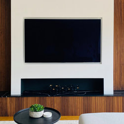 Our client, a busy professional and father of two, moved into the property with very little furniture and needed a complete, considered furnishing and decoration solution. We managed the project end to end, designing the bespoke walnut and marble feature wall, defining the colour palette, and sourcing and purchasing all furniture, lighting and accessories.