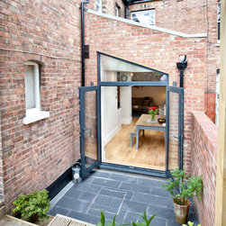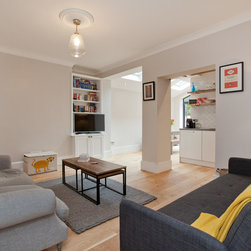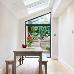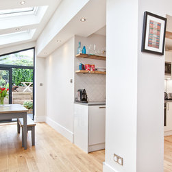 The extension shown here is in North London and was created to bring light into the flat and create a separate dining room while modernizing the property and making it practical for family life.