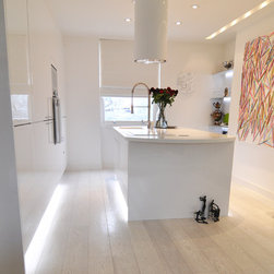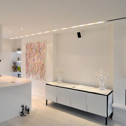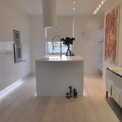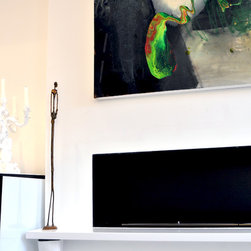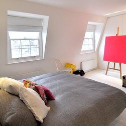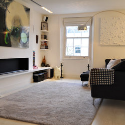 This Notting Hill maisonette was an empty canvas that was just waiting to be painted! With the artistic flair of our client, the flat turned into a beautiful, spacious and bright gallery. Knocking out the kitchen wall allowed to introduce a very open layout, helping to joining the living room and kitchen room into a stunning living space. The living room scheme is built on the black and white contrast and is a great background for stunning art pieces. The colours all come from personal objects or art, which makes this space so unique and interesting. The idea flows through the kitchen, where white units blend with walls, and appliances, creating a canvas for stunning colourful art pieces.