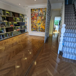 Oak chevron expert restoration and refinish, Fulham Lion House SW6