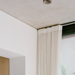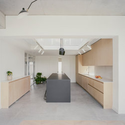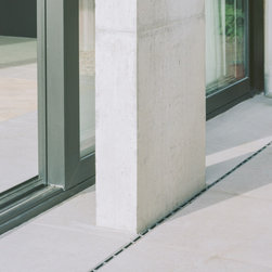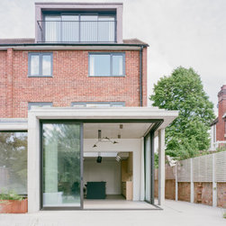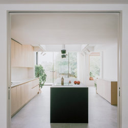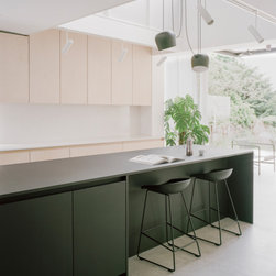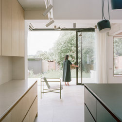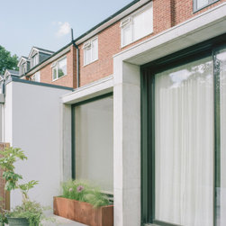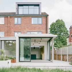 Beyond the lobby, a new bespoke kitchen sits within a raw concrete extension. The full-width, single storey extension adds valuable extra space for the young family. All of these ground floor areas will have a clear view through to the garden - a design move that helps the inhabitants to embrace the outdoors.