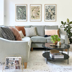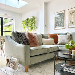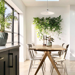 A light, breezy and informal open plan living dining space which uses biophilic design to connect the inside to the outside.