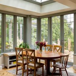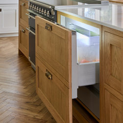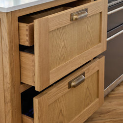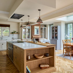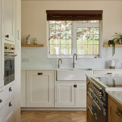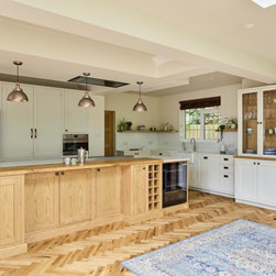 Painted Shaker kitchen with Oak island. Woodford Green.