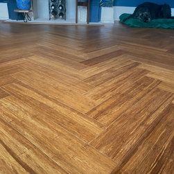 This Strand Woven Parquet Block Bamboo is beautiful grey colour. The flooring is strong and durable. The surface of the floor is slightly distressed, offering a textured feel. It has a tongue and groove fitting system and can be laid as Herringbone, Basket Weave or Brickbond. The flooring is FSC...