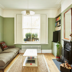 At first floor a new bathroom was provided with separate shower enclosure and airing cupboard. New Idealcombi composite windows were provided to bathroom and 2nd bedroom (to the rear of the house), with new double glazed sash windows to the main bedroom and front reception (to the front of the house). A new heating system was incorporated with new modern column radiators to all rooms. As usual a select palette of standard materials and products were used to provide a coordinated, high performance & cost effective finish.