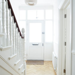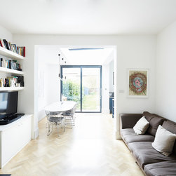In addition to the external refurbishment and extensions, an extensive internal rebuilding and upgrading exercise was also required. The original workmanship and structural strategy employed had meant that the condition of the existing structure was unsound and extensive structural upgrades were required, and there was also extensive damage from long term damp - ultimately requiring the re-building & finishing of all internal floors, walls, windows, roofs and services. Also due to the size of the properties, and the fact that both were effectively end of terrace, being exposed on 3 sides, an extensive retrofit was required to provide fully insulated external walls, roofs and new double glazed timber sash windows (to match the original). The end result is a significantly warmer, more energy efficient property, without having lost the original character and detailing of the properties.