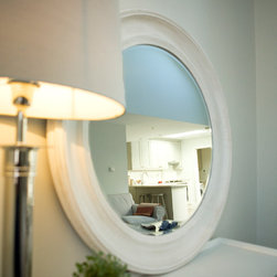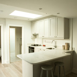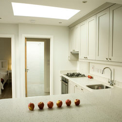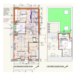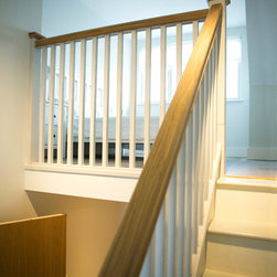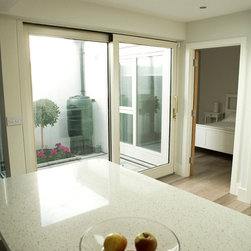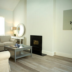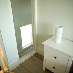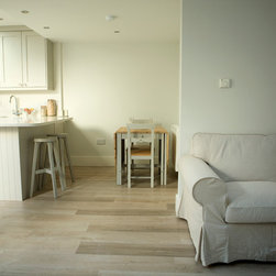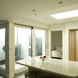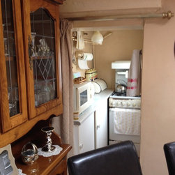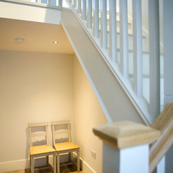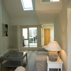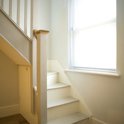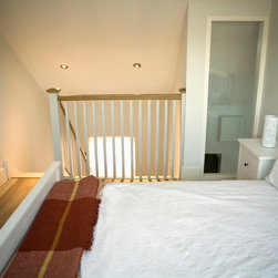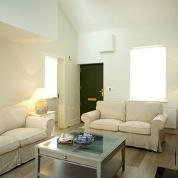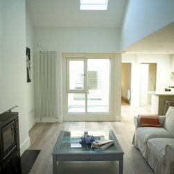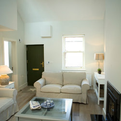 The cottage was gutted and rebuilt with the addition of a mezzanine bedroom having internal window looking towards front door.