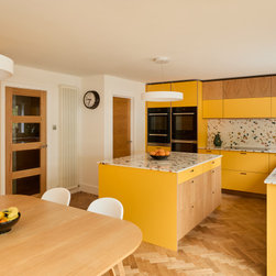 This colourful kitchen was designed for a couple that have been inspired by the flamboyant interiors in the seaside town of Margate. The town is home to a large community of creatives and as such has an array of properties with eccentric interiors in which you can stay. The clients property in Tunbridge Wells is a mid 1980's built house on a cul de sac. We wanted to design something that felt in keeping with the property but was also modern and practical.