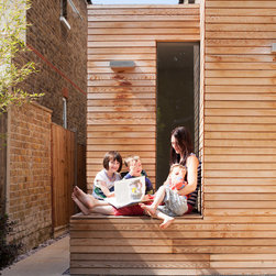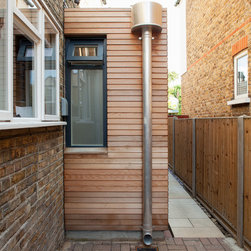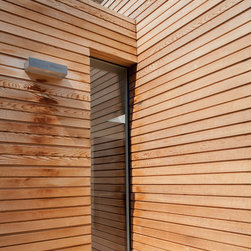 While the extension makes use of a modern idiom, so that it is clearly distinguished from the original house and so that the history of its development becomes immediately apparent, the size of the red cedar cladding boards, left untreated to allow a natural silvering process, matches that of the Victorian brickwork to bind house and extension together.