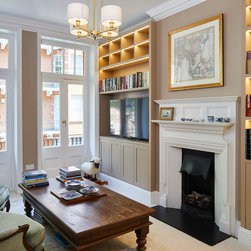 Extensive joinery was designed and built by Huntsmore. These featured in all three bedrooms, one of the living rooms, and running alongside the entire length of the hallway to house the family's extensive book collection.