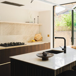 Ecliptic Cottage is a compact Victorian terrace in Wandsworth, reimagined as a carefully choreographed sequence of light, texture and mood. Working within conservation and flood-zone constraints, Rees Architects transformed the modest footprint into a home that feels expansive through atmosphere rather than size. The ground floor unfolds from a softly lit, intimate lounge to a bright kitchen extension opening to the garden, with subtle level changes defining zones. Light acts as the primary architectural tool, guiding movement and pace throughout. Thoughtful joinery, tactile materials and restrained heritage interventions create a calm, fluid home rich in character and everyday functionality.