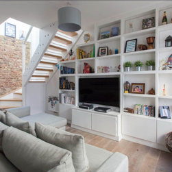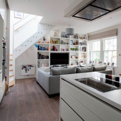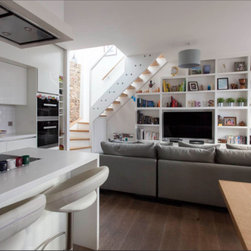 Rees+Lee Architects designed and managed the complete refurbishment of this tired mews property in the Queens gate conservation area of South Kensington, London. The clients brief was to produce an open, bright and warm environment that would make use of every available inch of space. Also key to the brief was to modernise the house whilst retaining key aspects of the existing mews to add character and atmosphere.