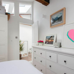 The roof was rebuilt with the existing timber structure exposed, additional roof lights were added over the stairwell and the vaulted ceilings were provided to give height and high level storage.