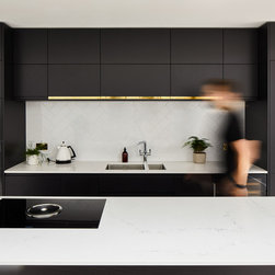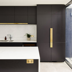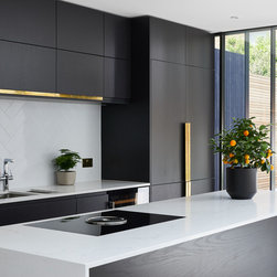 Key to a clean minimal design is keeping all structural elements hidden, so we gave special attention to hiding window frames as well as rainwater pipes and guttering within the structure. The steelwork and door frame over the rear patio doors are cleverly hidden behind the brickwork above. We had retained some of the existing bricks from the removed side wall to rebuild this wall above, a bit of visual trickery that makes it unnoticeable. This finish looks deceptively simple and clean in the photos, but it’s a particularly tricky design detail that required a lot of forethought to be carried out successfully.