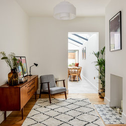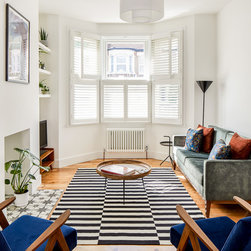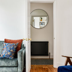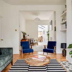 We re-configured the ground floor layout so that when you enter the house you have a direct view of the garden from the entrance hall, welcoming and drawing you further in to the home. This line of vision is also at play from the living room where you can see all the way into the garden framed by the picture window seat. The interconnection between the front and rear without being completely open plan makes for a happy medium; there are small intimate spaces, but you’re never cut off from any other activity going on across the ground floor. This innate sense of flow was foundational for the rest of the design.
