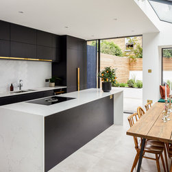 • Full kitchen design (Ikea carcasses with bespoke doors, handles and worktops)