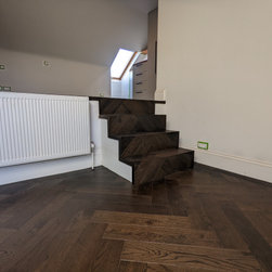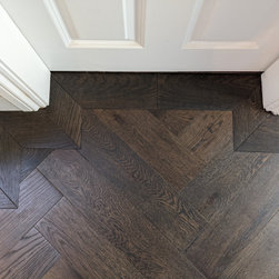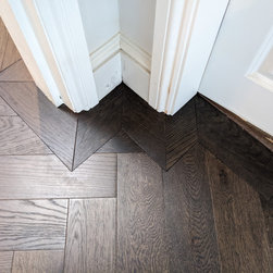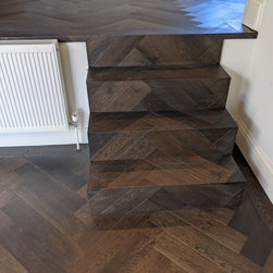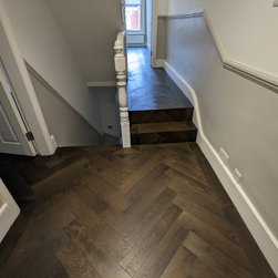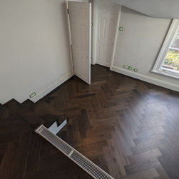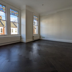 Rich, dark, Jacobean oak in an herringbone parquet layout | Balham SW17