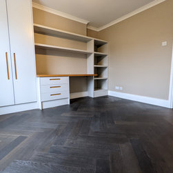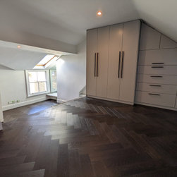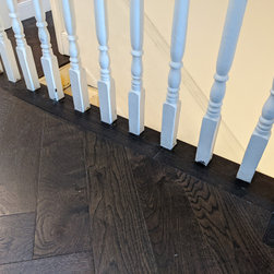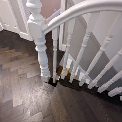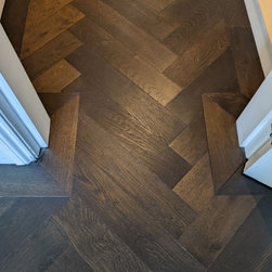 The team of Fin Wood craftsmen worked hard to achieve the customer's design brief of maximum continuity of the herringbone parquet. The customers were very happy with their desired outcome.