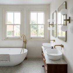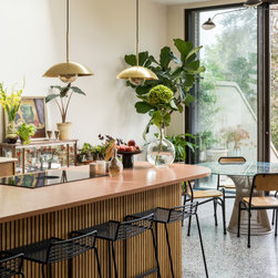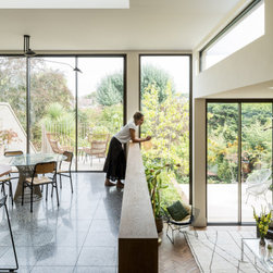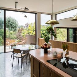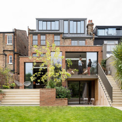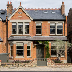 Semi-detached Edwardian family home, with contemporary split-level rear kitchen / family room extension with brick detailing, rear balcony and terrace. Complete interior re-model, featuring new loft extension and newly fitted out master bedroom, children's bedrooms, bathrooms and basement space.