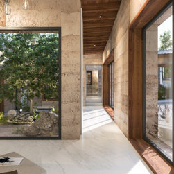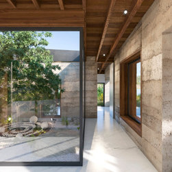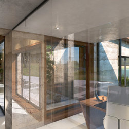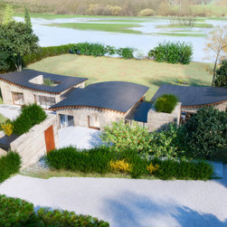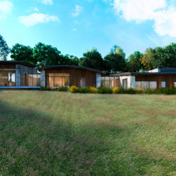 A stunning rural home on the edge of the Lugg Valley. The design seeks to embrace the landscape setting and integrate gardens into the house by using interior external courtyards and weaving the gardens into the stepped levels of the house.