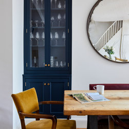 In the adjoining dining room we added 2 double door full height glazed dressers. These are used for bar type storage of glasses, spirits and cocktail making essentials. Perfectly positioned next to the large antique dining table.