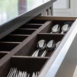 Bespoke full height cabinet doors produced to hide large boiler area and laundy shelving.