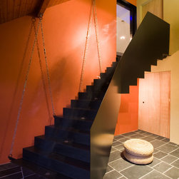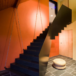 Working closely with steel fabricator, Thomas Forge, a sculptural staircase was created, providing a showpiece staircase sculpture that appears to float above the floor.