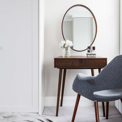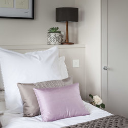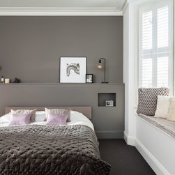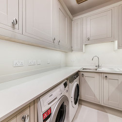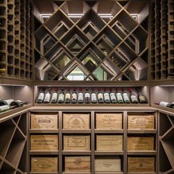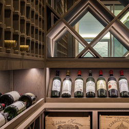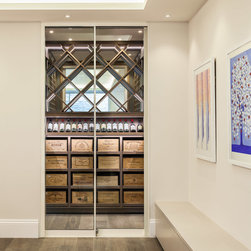 A feature of this house is the temperature-controlled wine room, which was fully designed by Jo Cowen Architects to meet our client’s requirements. The wine room is finished in a greyed oak veneer, with exposed edges hand painted in an antique gold varnish.