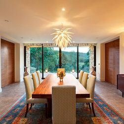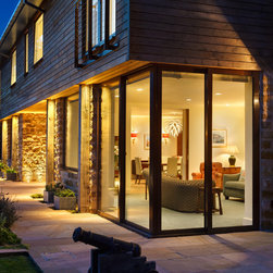 A beautiful new build stone and timber house. With lots of glass and a wonderful garden it was important to combine the internal and external lighting to make the most of the space.