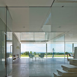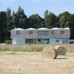 The client’s brief was for a contemporary house that would sit well in the landscape and respond sensitively to it’s tree lined site and rural setting. Overlooking sweeping views to the South Downs the design of the house is composed of a series of layers, which echo the horizontality of the fields and distant hills.