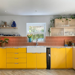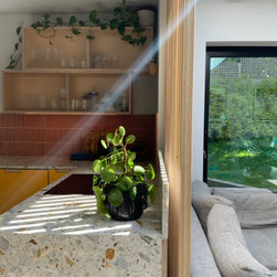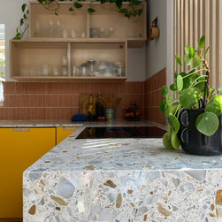 Ikea cabinets, Plykia fronts, and a Diespeker terrazzo worktop