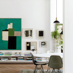 Internal partitions were rationalized and generous door openings created in order to provide free-flowing circulation and to make the most of views through the building. Natural light was also an important consideration as the house was also to be used as a gallery space for our client to exhibit her own paintings.