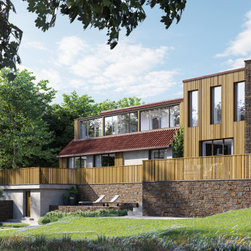 Situated within the Green Belt on the outskirts of Epping Forest, this house was in need of refurbishment and we decided to upgrade and enhance the exterior with highly tactile materials and careful detailing. The original house is retained in its majority, the dormers re-clad in timber and new large windows increase natural light to the interiors. This is a bold, highly architectural design that is respectful of the mature setting.