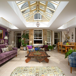 Light ivory finish to the interior woodwork, including the underside of the cupola (or glass lantern), lets light bounce around the surfaces, creating a bright and elegant space, which has fast become the hub of the house for family and friends alike. Looking upwards through the central cupola, the eye is drawn to the original turreted bays and skyline. A glorious feature beautifully presented and enjoyed daily, from inside and out.