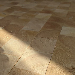 End grain flooring is a distinctive type of wood flooring. Unlike traditional planks cut lengthwise, end grain blocks are sawn across the grain, revealing the annual rings of the tree. This gives the surface a unique texture, exceptional durability, and a natural warmth that elevates any interior.