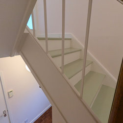 To complete the look, the risers and stringers were painted in Farrow & Ball signature Pointing White, while the treads and landing were finished in Farrow & Ball classic Cooking Apple Green, reflecting the home’s warm character. Finally, we applied two coats of Osmo natural pine oil — the first to enhance the colour and the second to provide durable protection. The clients were delighted with the end result.
