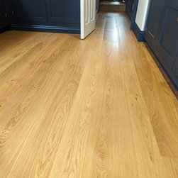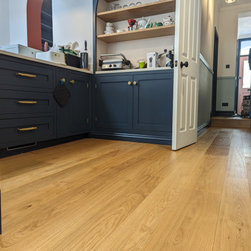 We transformed the kitchen extension and hallway with random width floors composed of 20mm thick boards in a natural grade.
