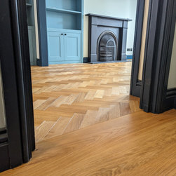 Traditional style oak stair cladding with Herringbone Parquet | SE22