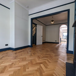 We showcased a stunningly simple herringbone parquet floor reserved as a standout feature for the main double reception room.